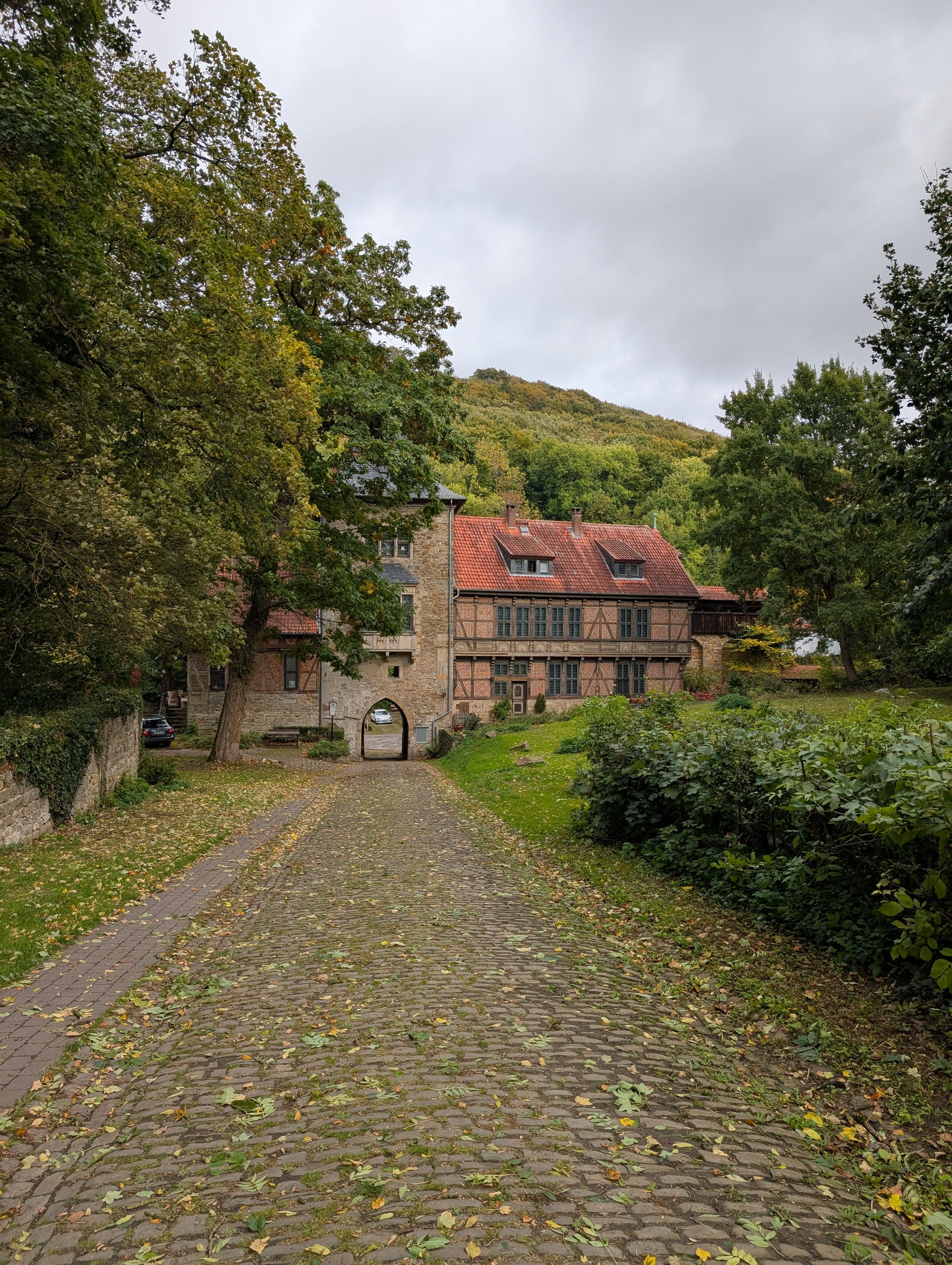 We roll in mid to late afternoon, bikes lining up beneath ancient stone walls — a fitting end to a day defined by rivers, forests, and some of the finest flowing roads of the journey so far.