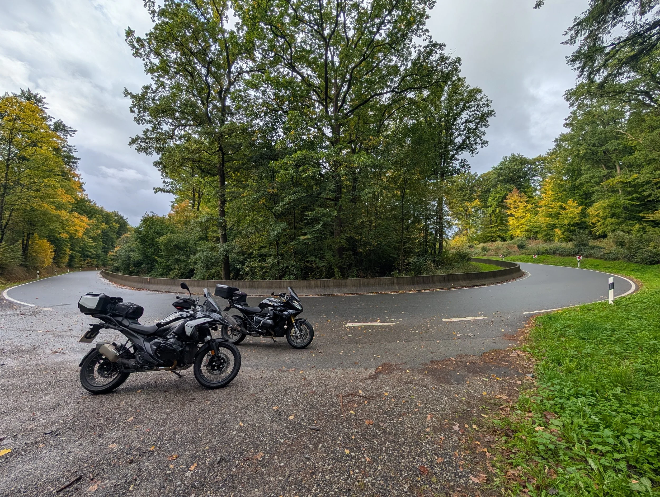 As we cross back into France, the landscape widens. Forest gives way to broader farmland and long, flowing sweepers. The roads here aren’t tight and technical — they’re fast, smooth, and satisfying. Perfect for steady progress without losing that touring feel.